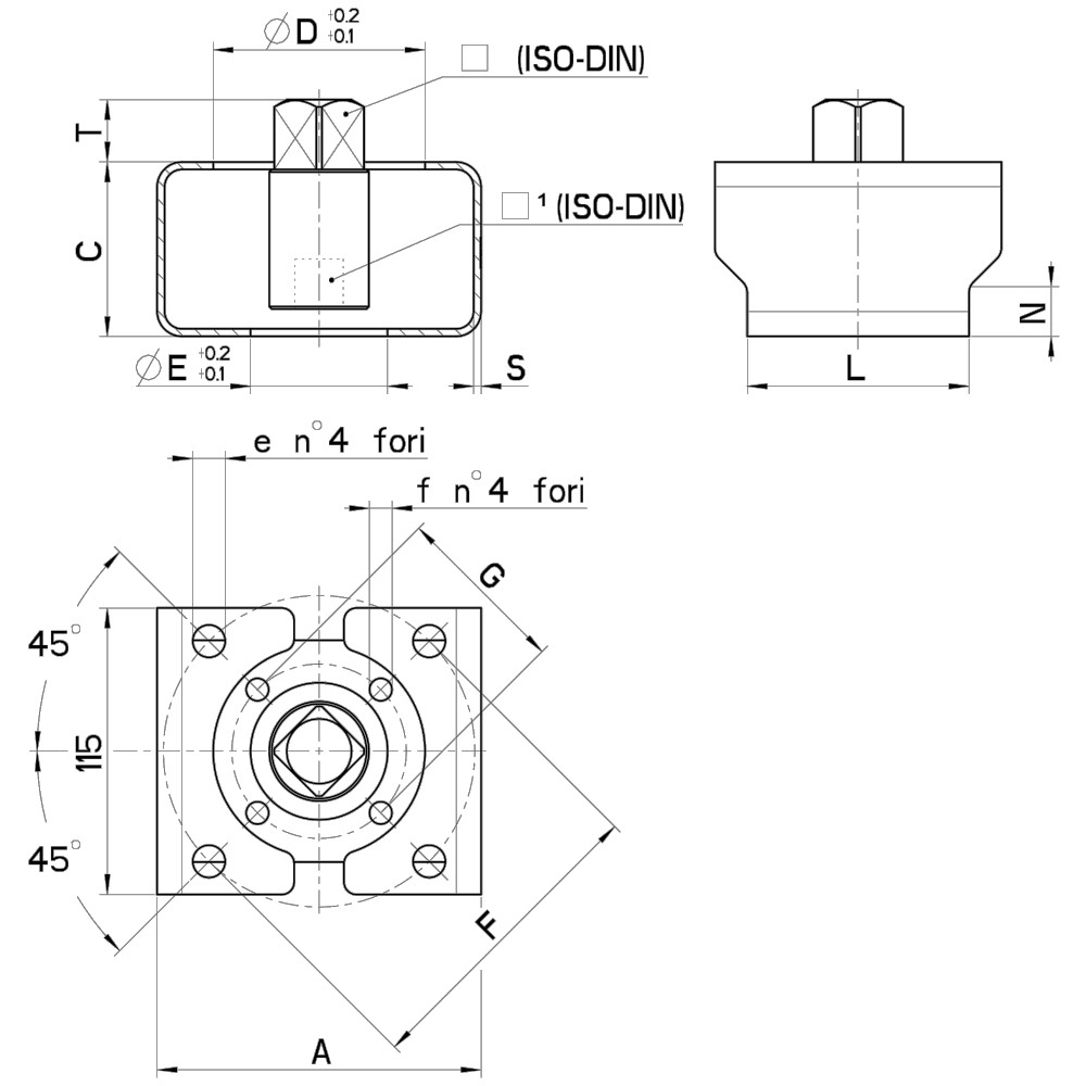 | ISO 5211 | □ | □ 1 | A | B | C | L | N | Ø D | Ø E | F | G | e | f | S | T | DN Valvola | Kg. | CODICE AISI 304 |