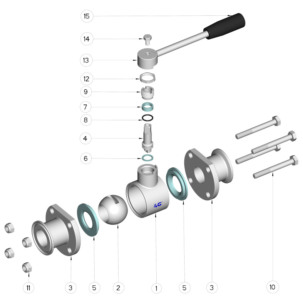 | 11 | Self-clamping nut | 4 - 6 | AISI 304L |