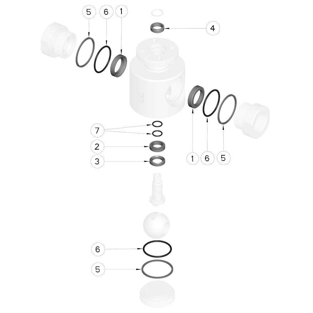 | 1 | Guarnizione Sfera | 2 | PTFE caricato inox |